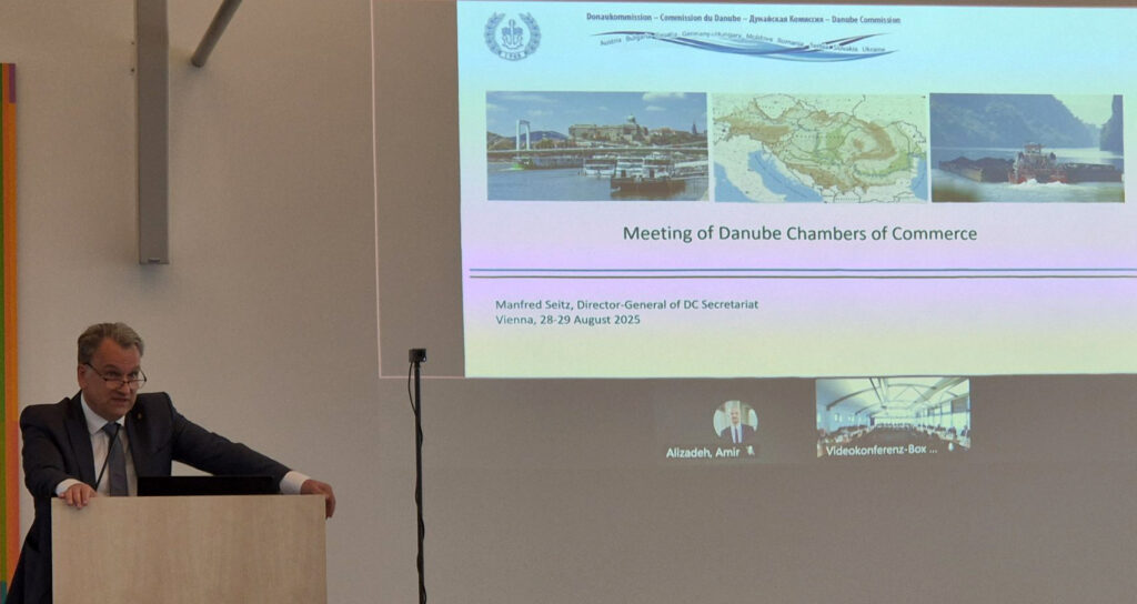 Danube Chambers of Commerce Federation held its Annual General Assembly on September 25, 2025 in Ulm, Baden-Württemberg, Germany. As keynote speaker at the event, the General Director of the Secretariat of the Danube Commission, Mr. Manfred Seitz presented the activities of the organization aimed at ensuring a good navigation status on the Danube, monitoring the fairway maintenance measures of the member states, and supporting several waterway infrastructure projects.  In the context of the energy transition policies developed at EU level, the Danube Commission has initiated discussions on the modernization of the Danube Fleet, elaborating a Strategy and Roadmap in this regard.