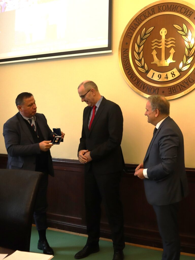 The open part of the session concluded with an official ceremony awarding the commemorative medal “For Contribution to the Development of Danube Shipping” to Mr Andreas Bäck (Austria).